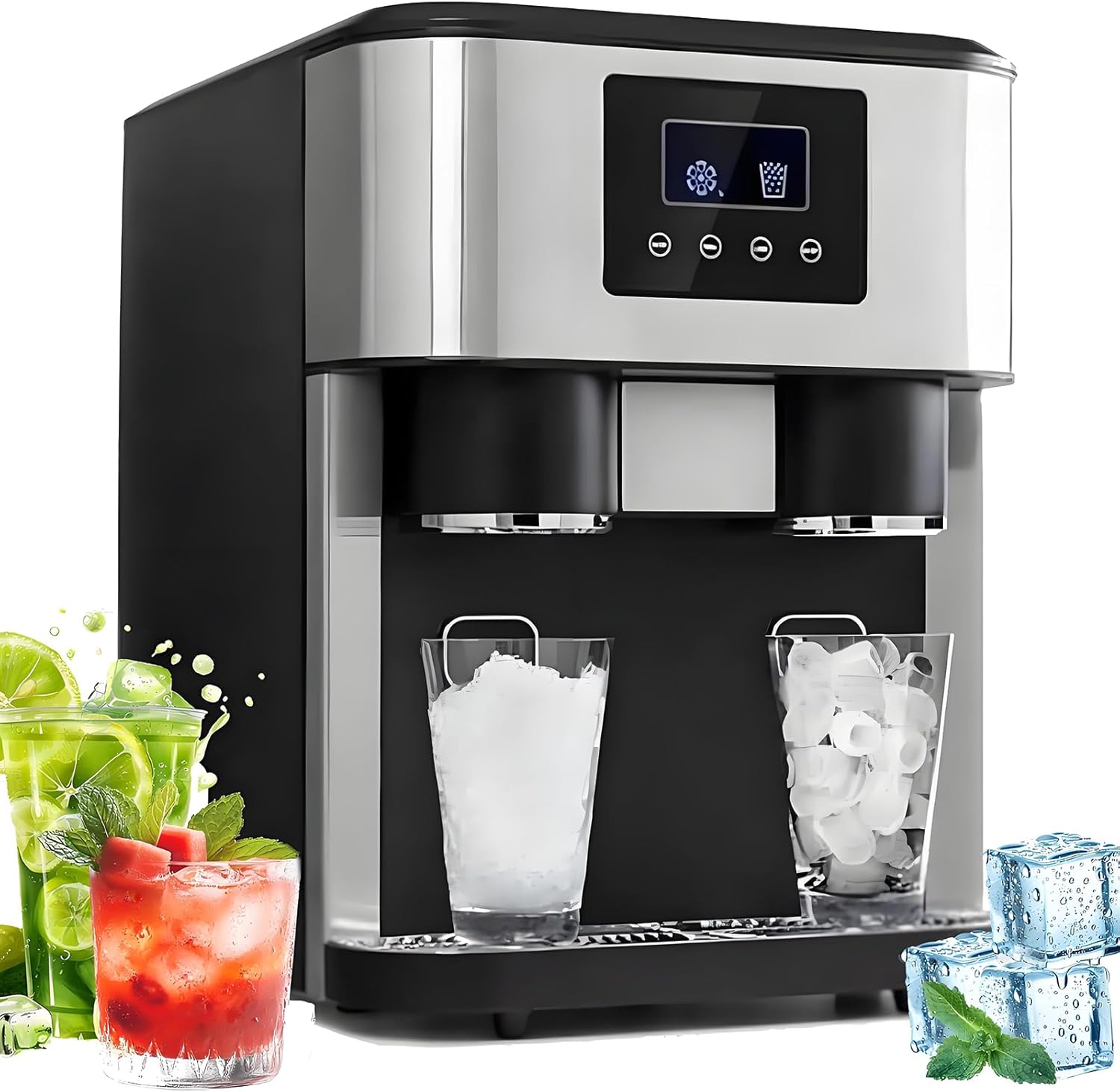 - 【Dual Ice Sizes for Versatility】: Experience ultimate flexibility with two ice cube sizes in this ice cube maker and water dispenser. The smaller cubes keep seafood and beer chilled to perfection, enhancing flavors and freshness. The larger cubes, on the other hand, cool beverages swiftly, transforming them into refreshing delights