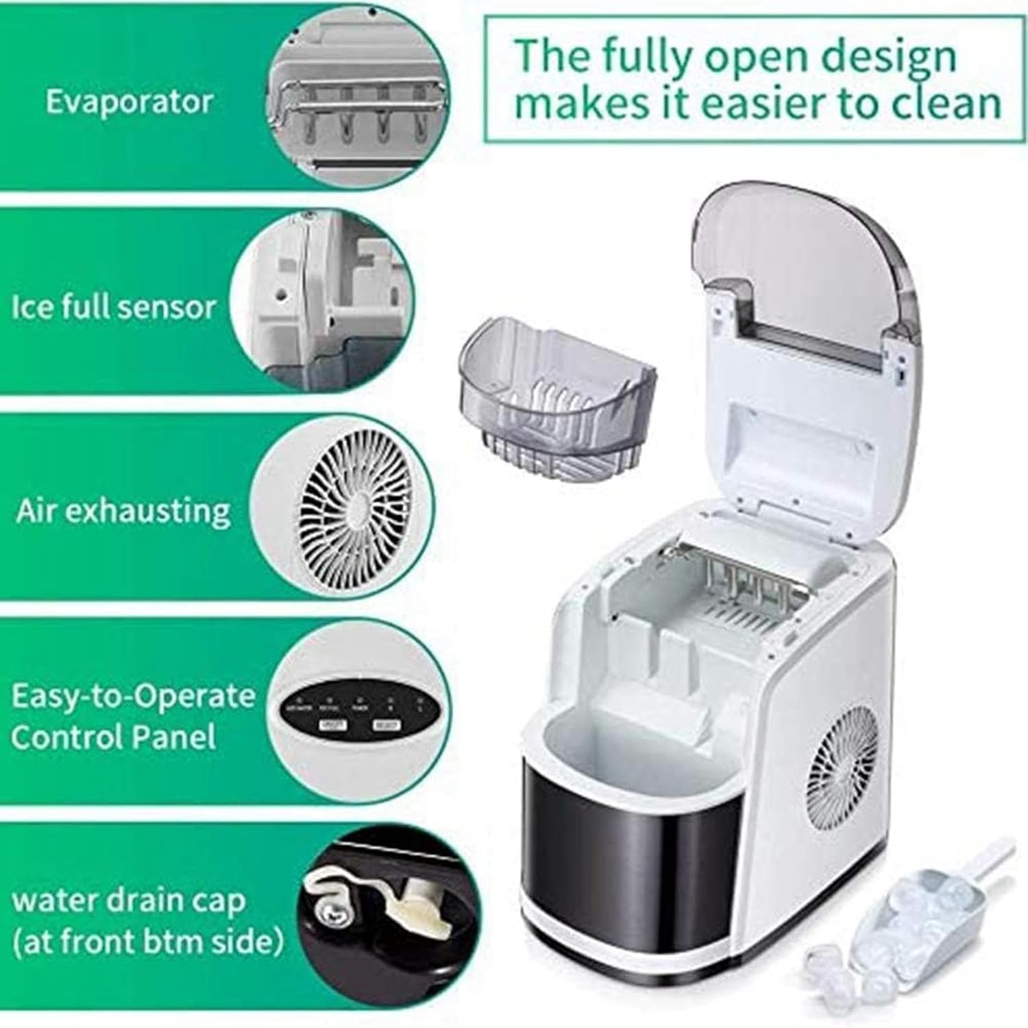 - [Healthy ice cube to use] : Our ice maker is different from others, the top cover with transparent window can be fully opened,you can see directly through it and easier to wipe.With self-ing function,it can produce more pure ice cubes.So It can offer healthy ice cubes for you, ensuring your eating safety.